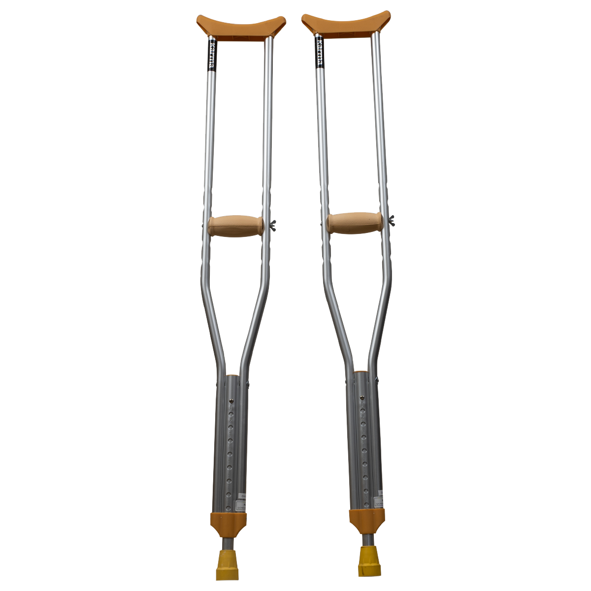 Arm crutches are used by placing the pad against the rib cage beneath the armpit and holding the grip, which is below and parallel to the pad. They are usually used to provide support for patients who have temporary restriction on ambulation. These crutches also contain a spring mechanism at the bottom.